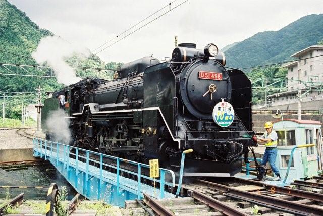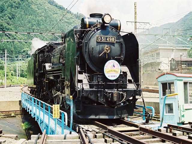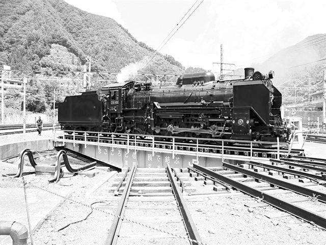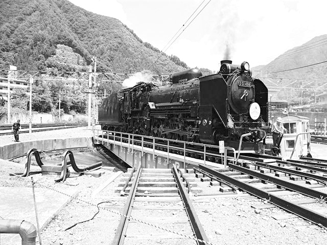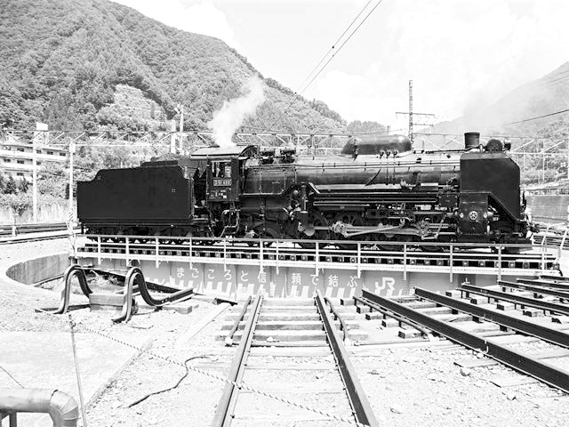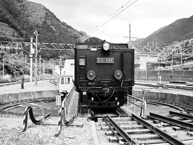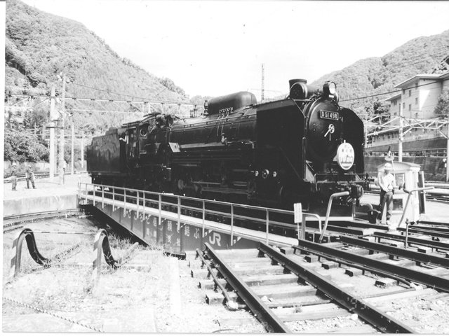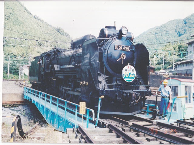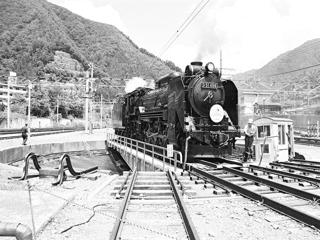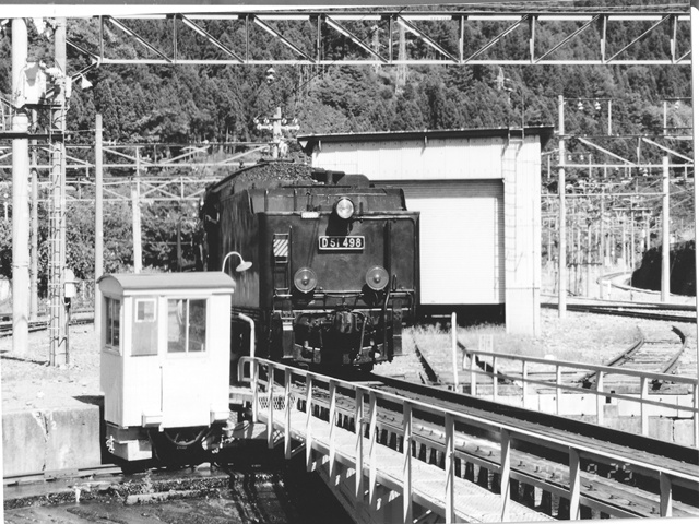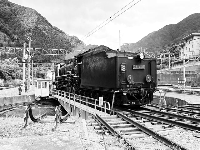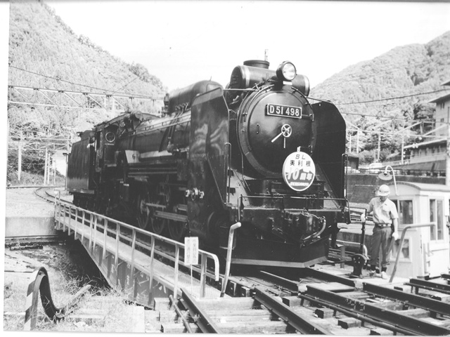 転車台に乗るD51498 水上にて、