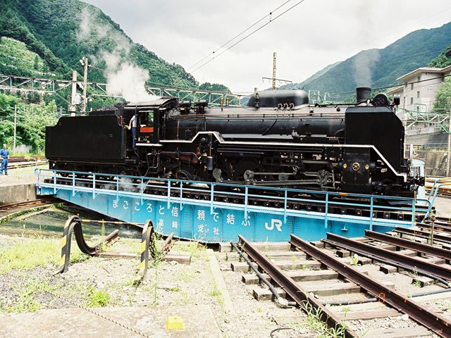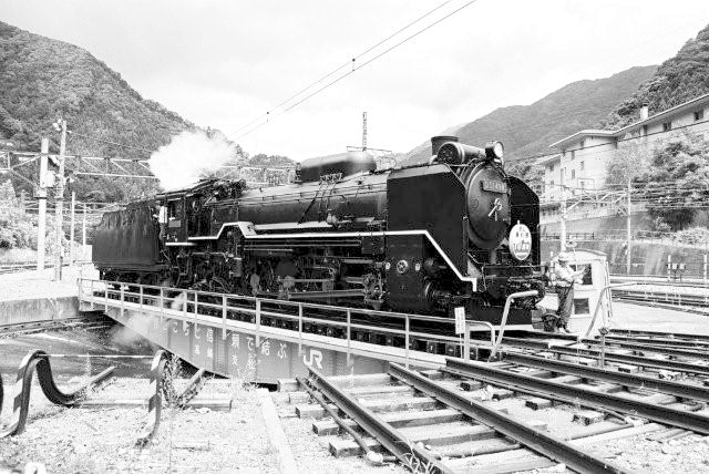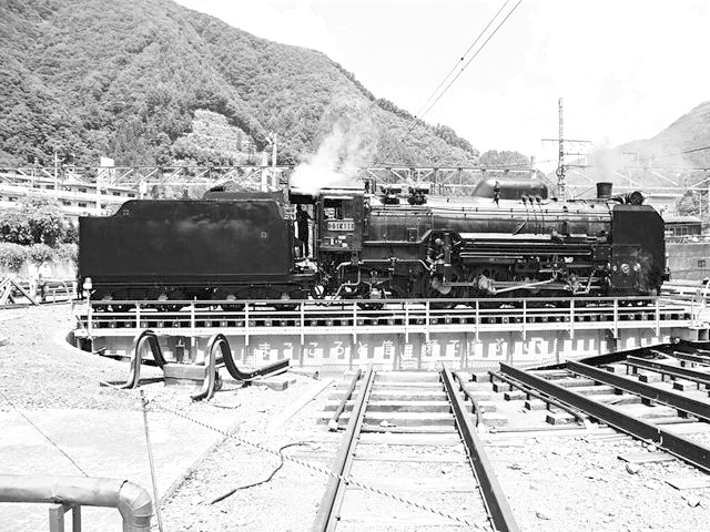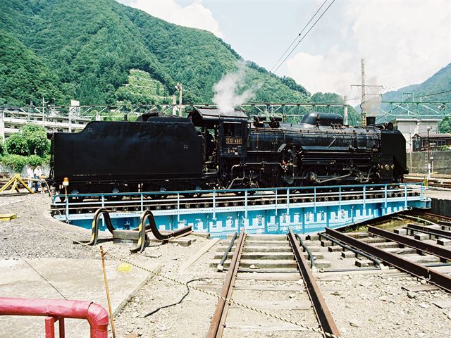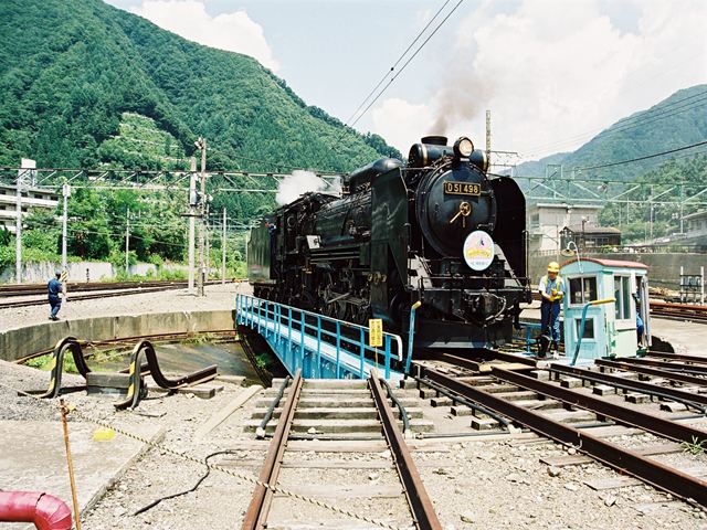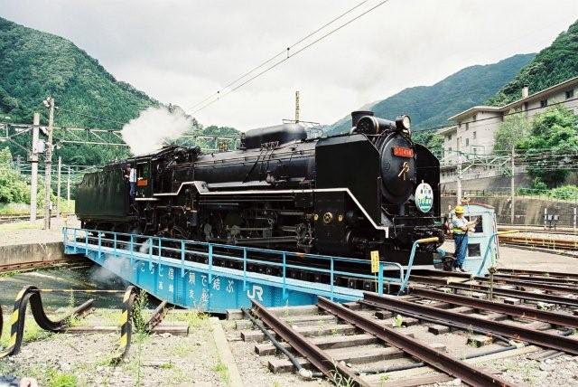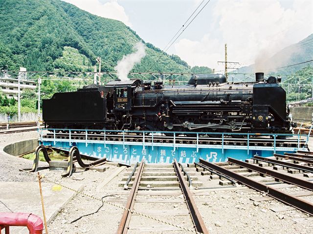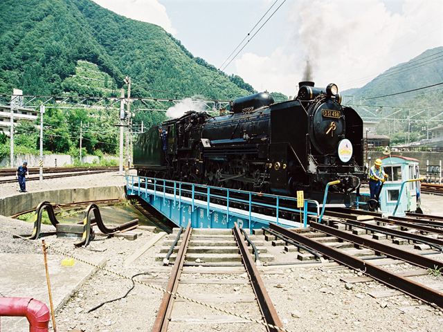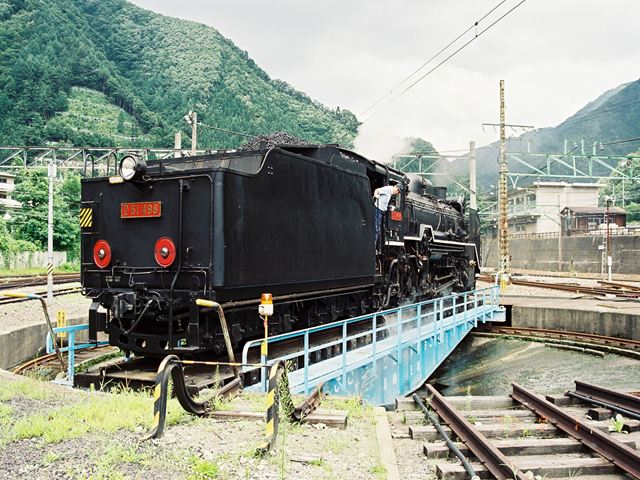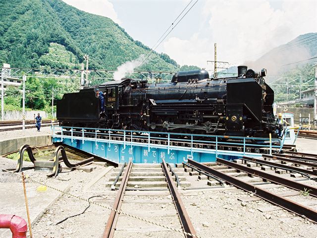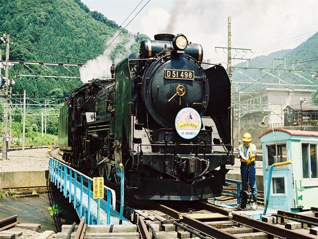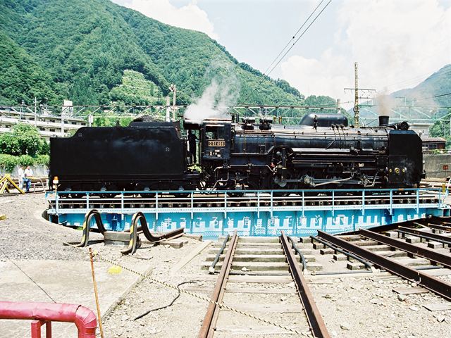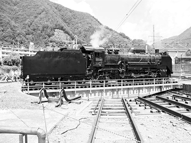 転車台に乗るD51498 水上にて、