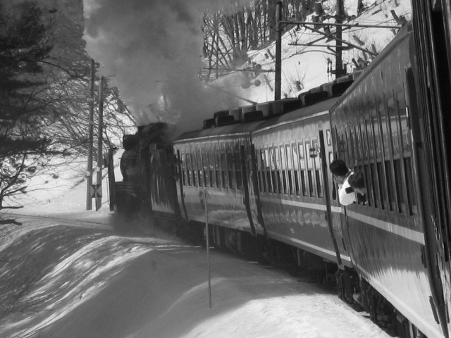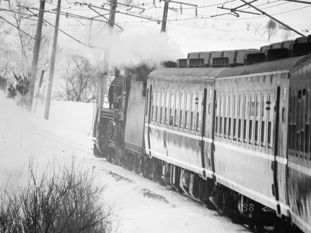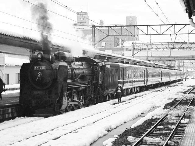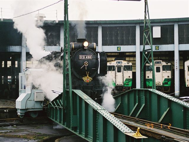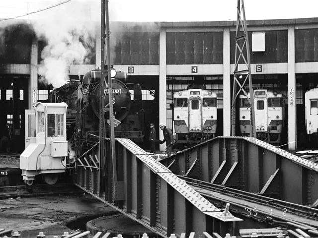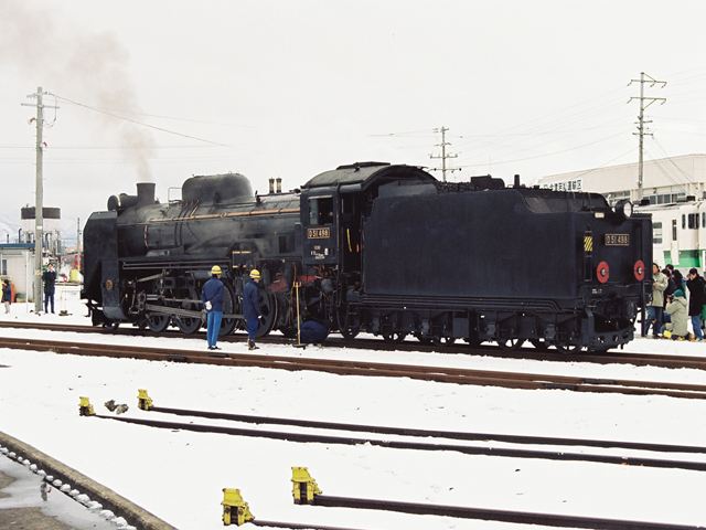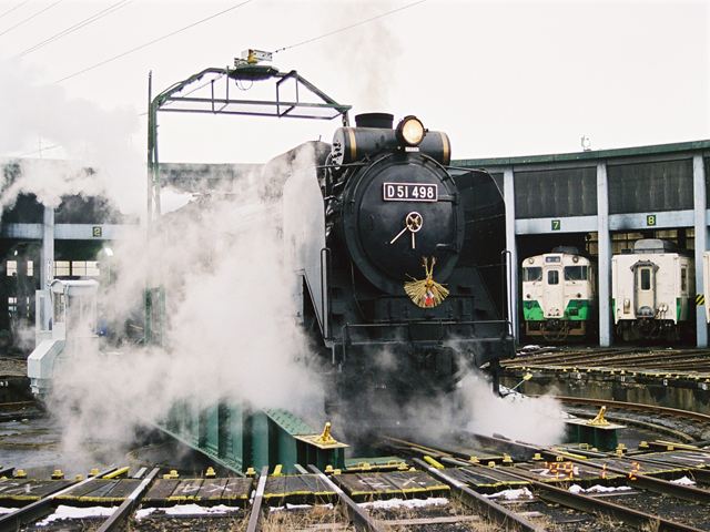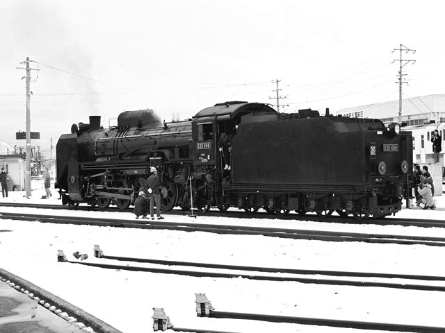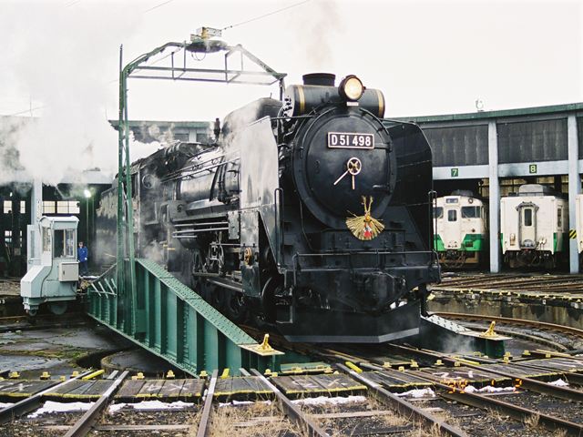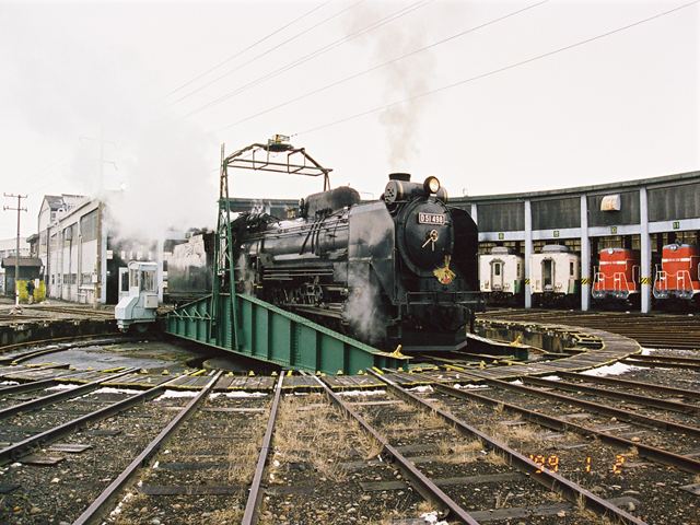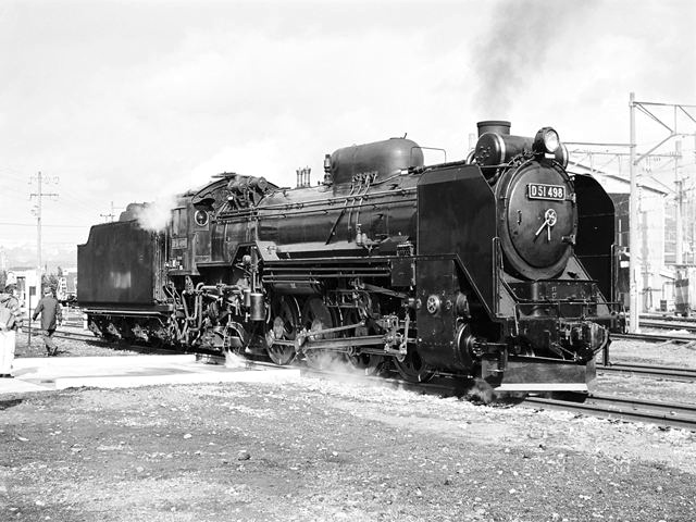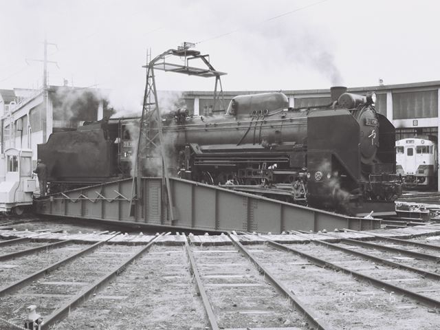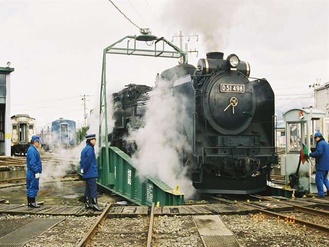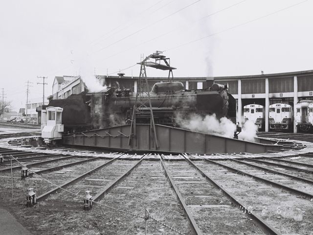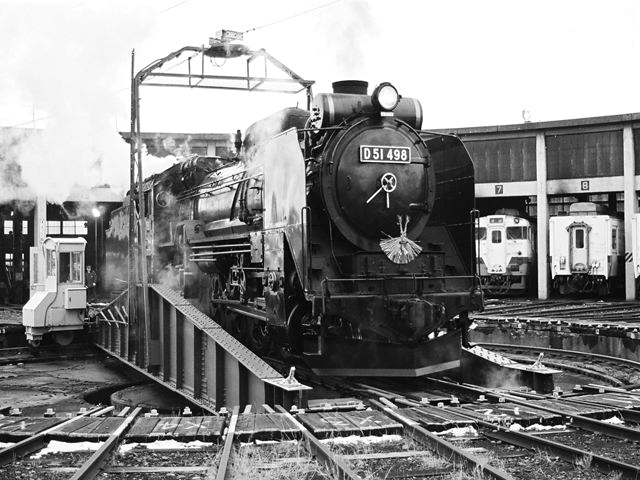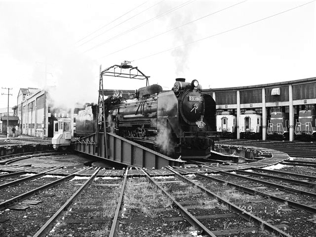 転車台に乗りしめ縄を付けたD51 会津若松運輸区内にて、
