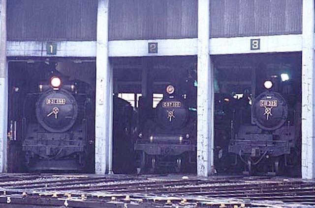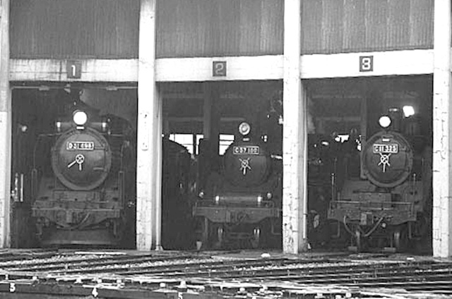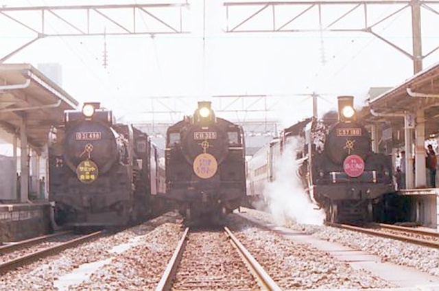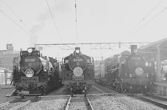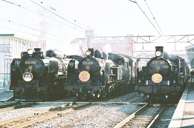 会津若松駅にD51498・C11325・C57180のSL三台並びが実現。
