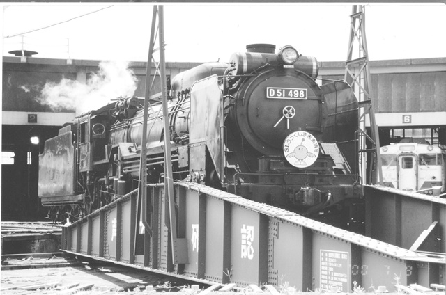転車台に乗るD51498 会津若松運輸区にて、