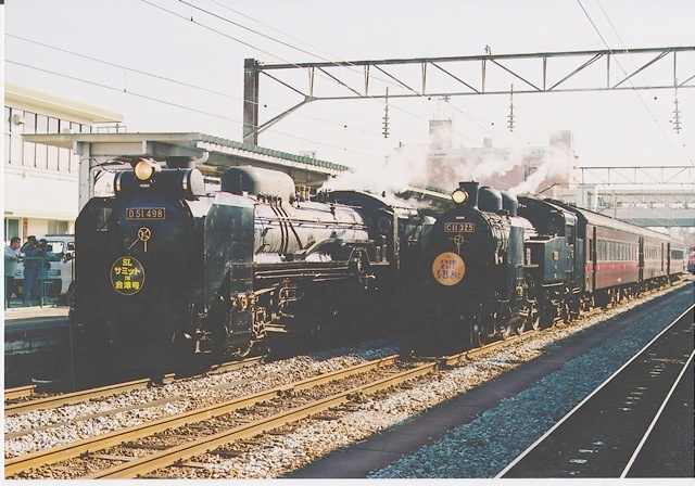 左の列車、D51498号機牽引のSLサミットIN会津号