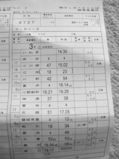 SLあぶくま号 ダイヤ時刻札 上り いわき