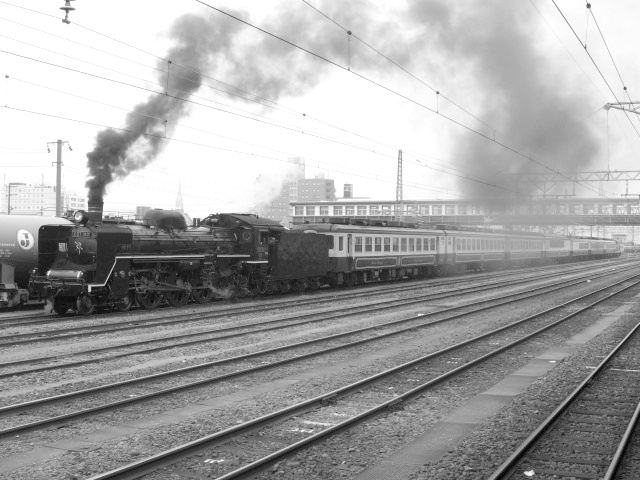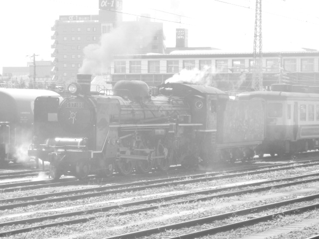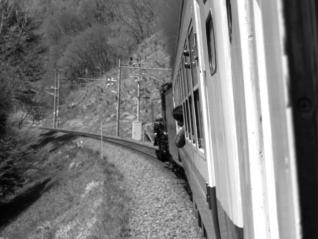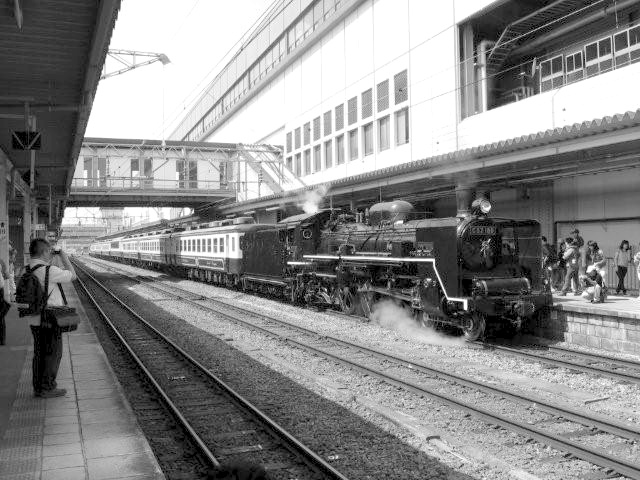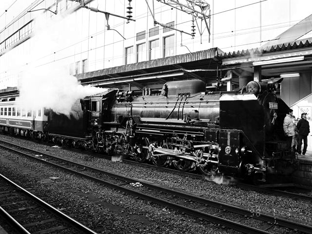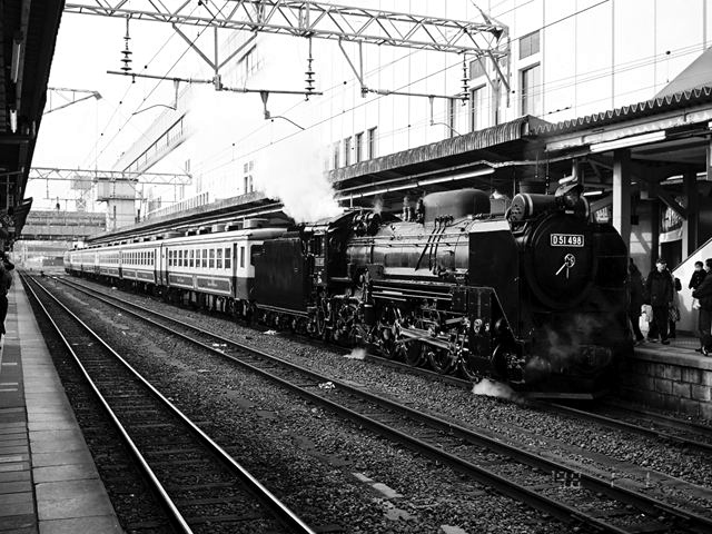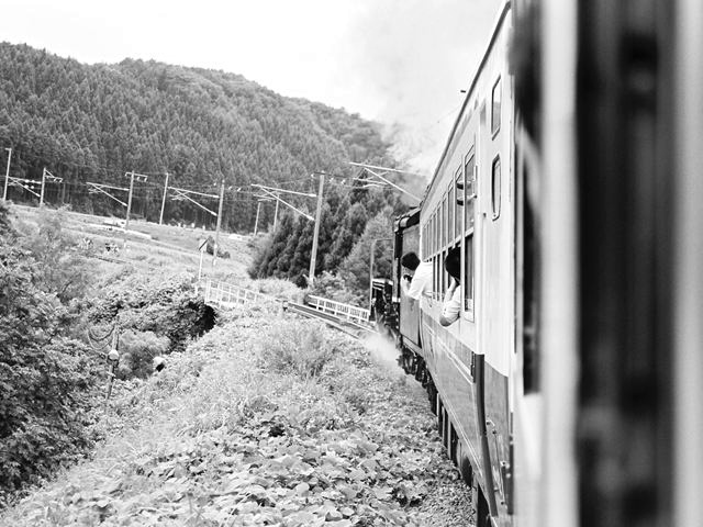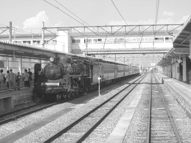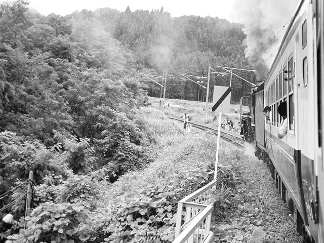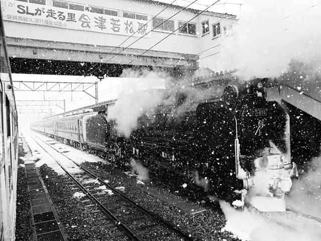 SL郡山会津路号 モノクロ 会津若松にて、