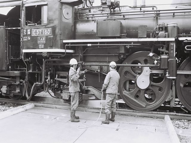 灰取り作業中のC57180号機 会津若松運輸区内にて、
