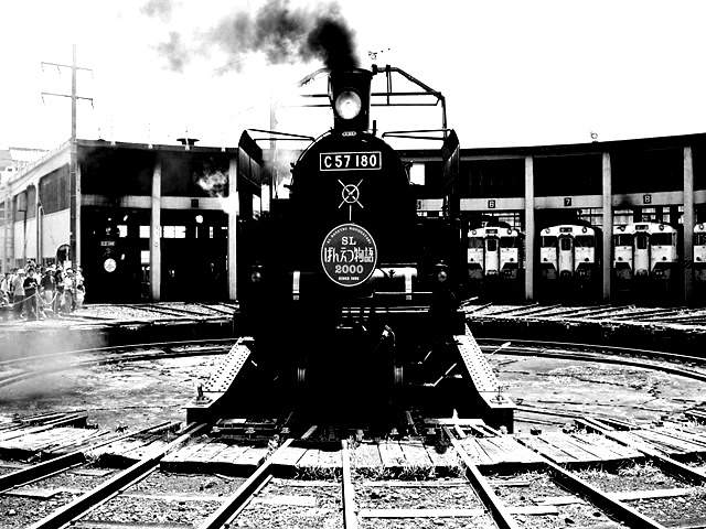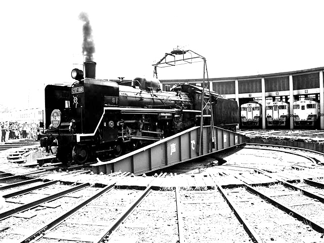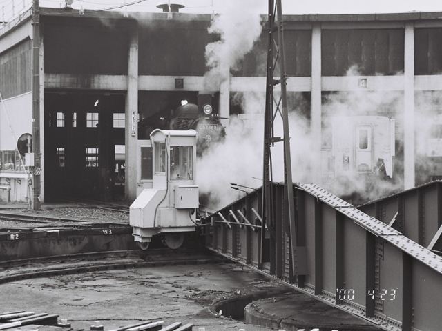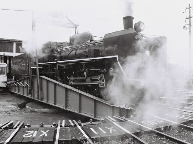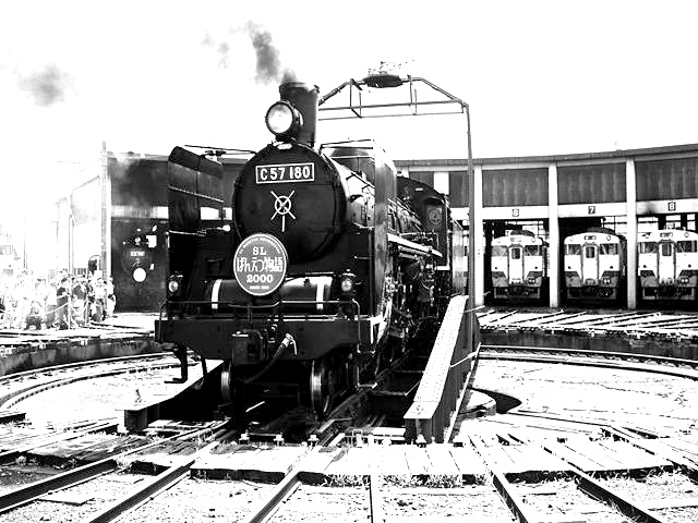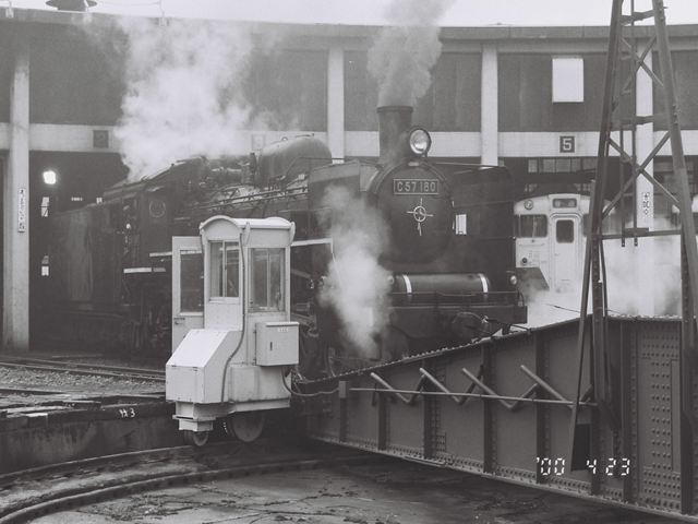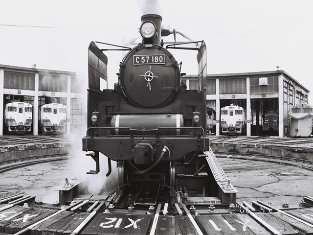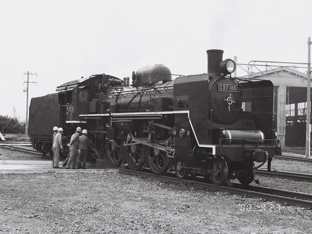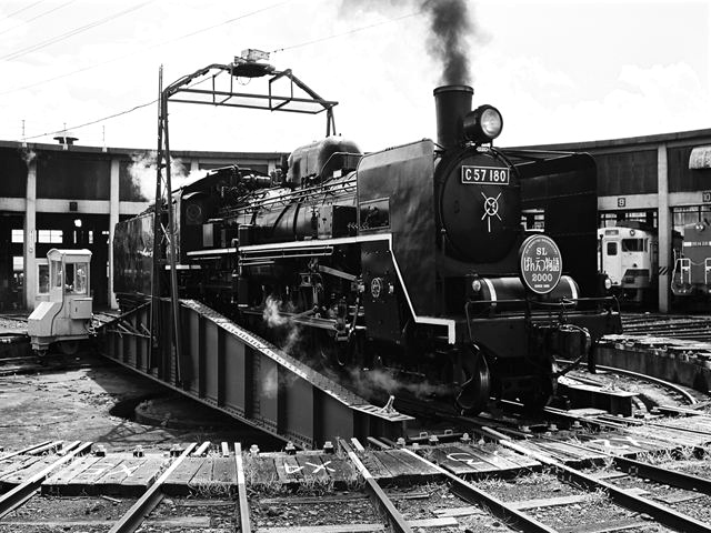 転車台に乗るC57180号機 会津若松運輸区内にて、